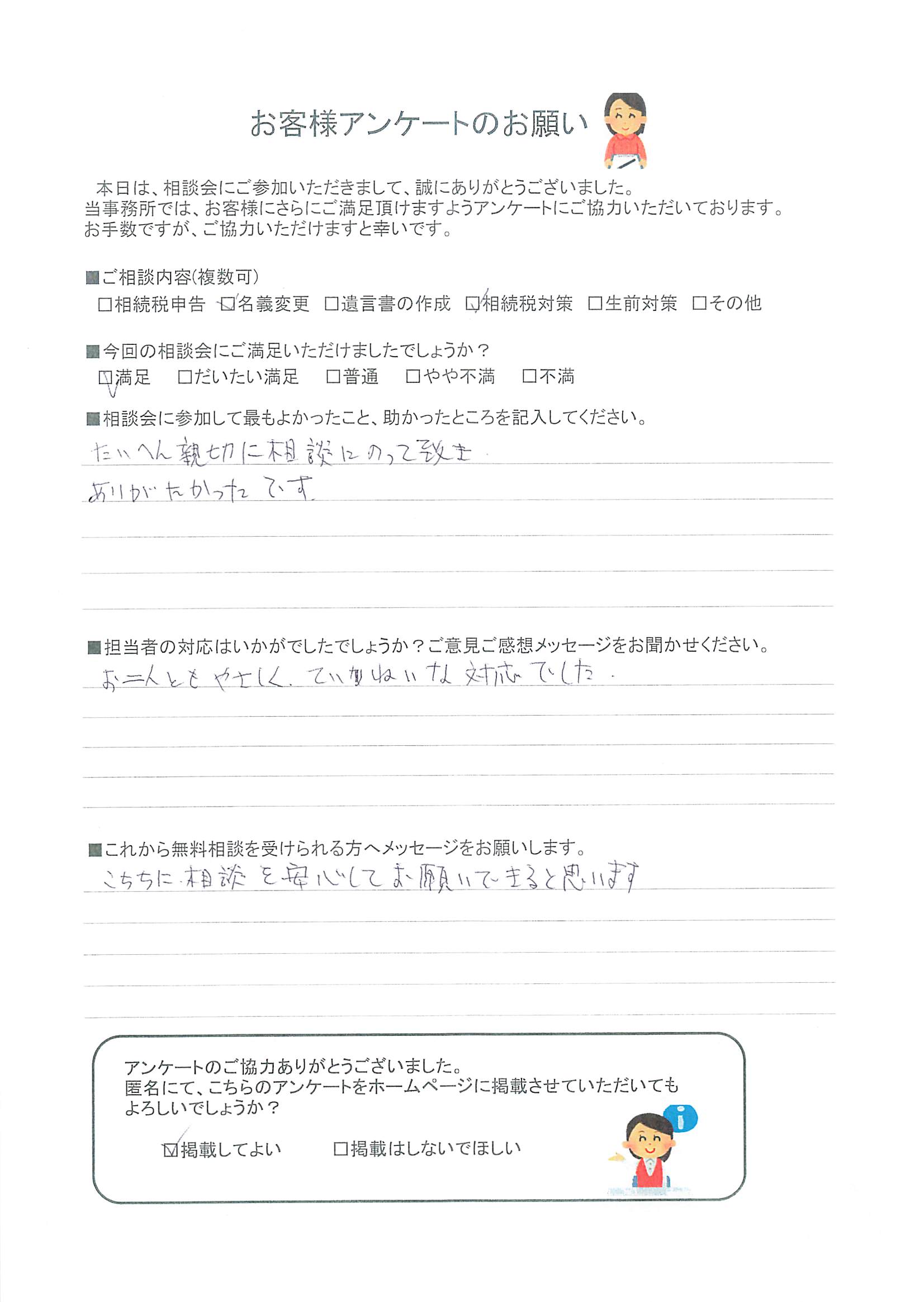 内容が良くわかり、司法書士さんもご紹介していただけて大変助かりました