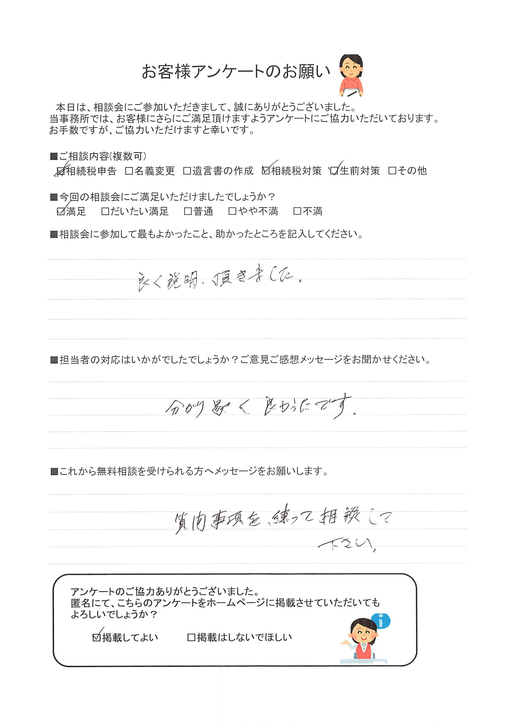 内容が良くわかり、司法書士さんもご紹介していただけて大変助かりました